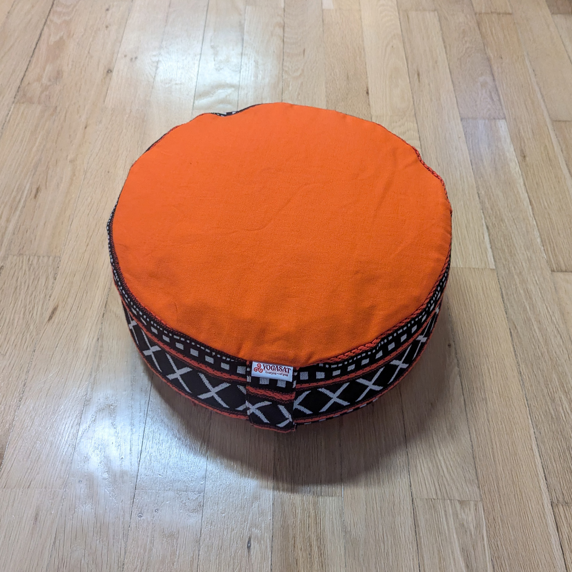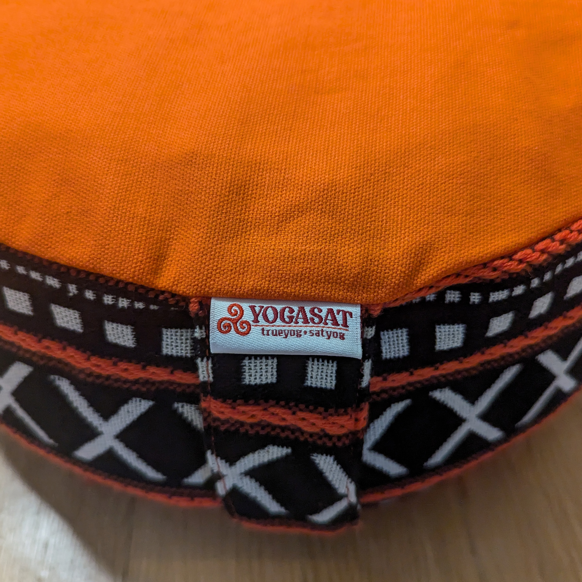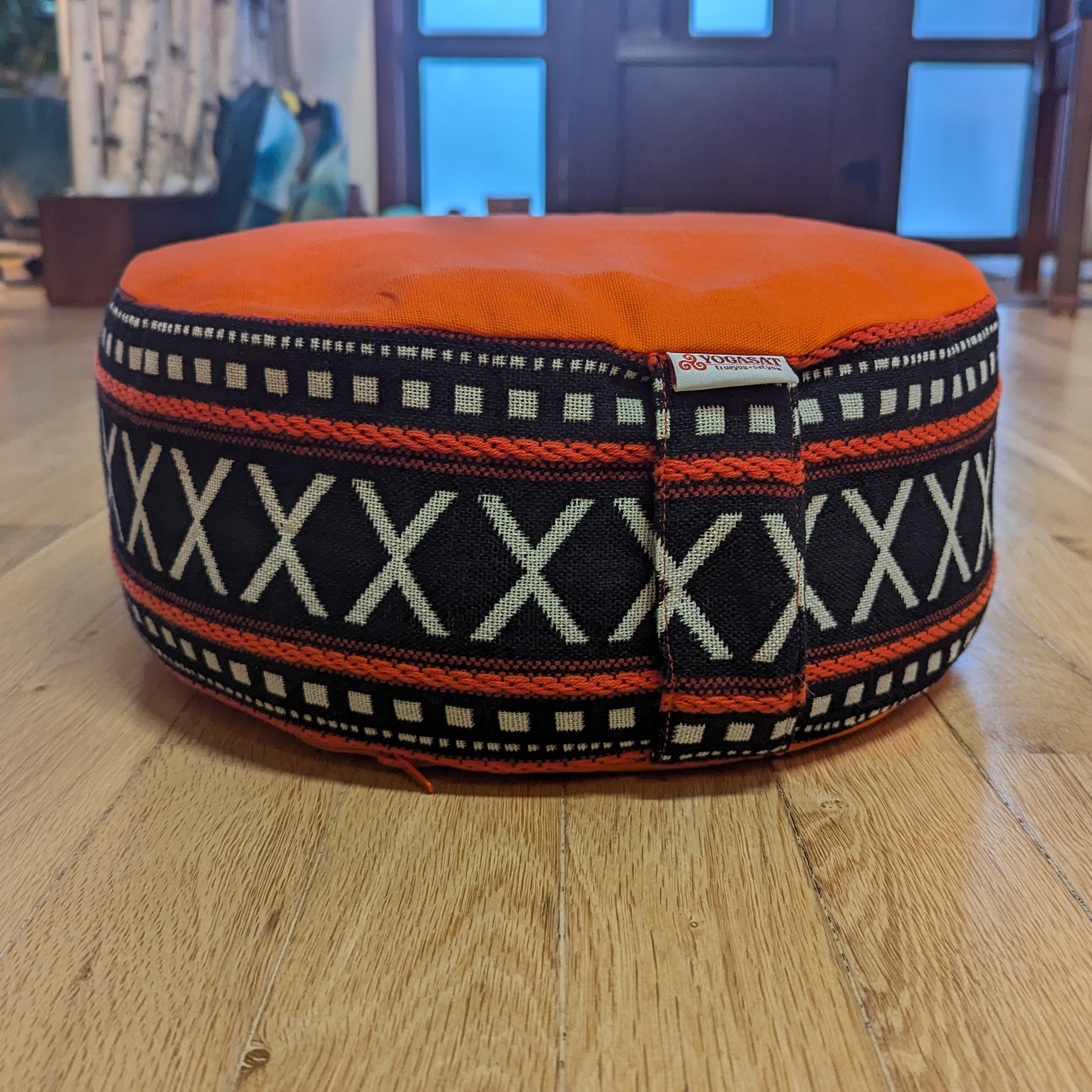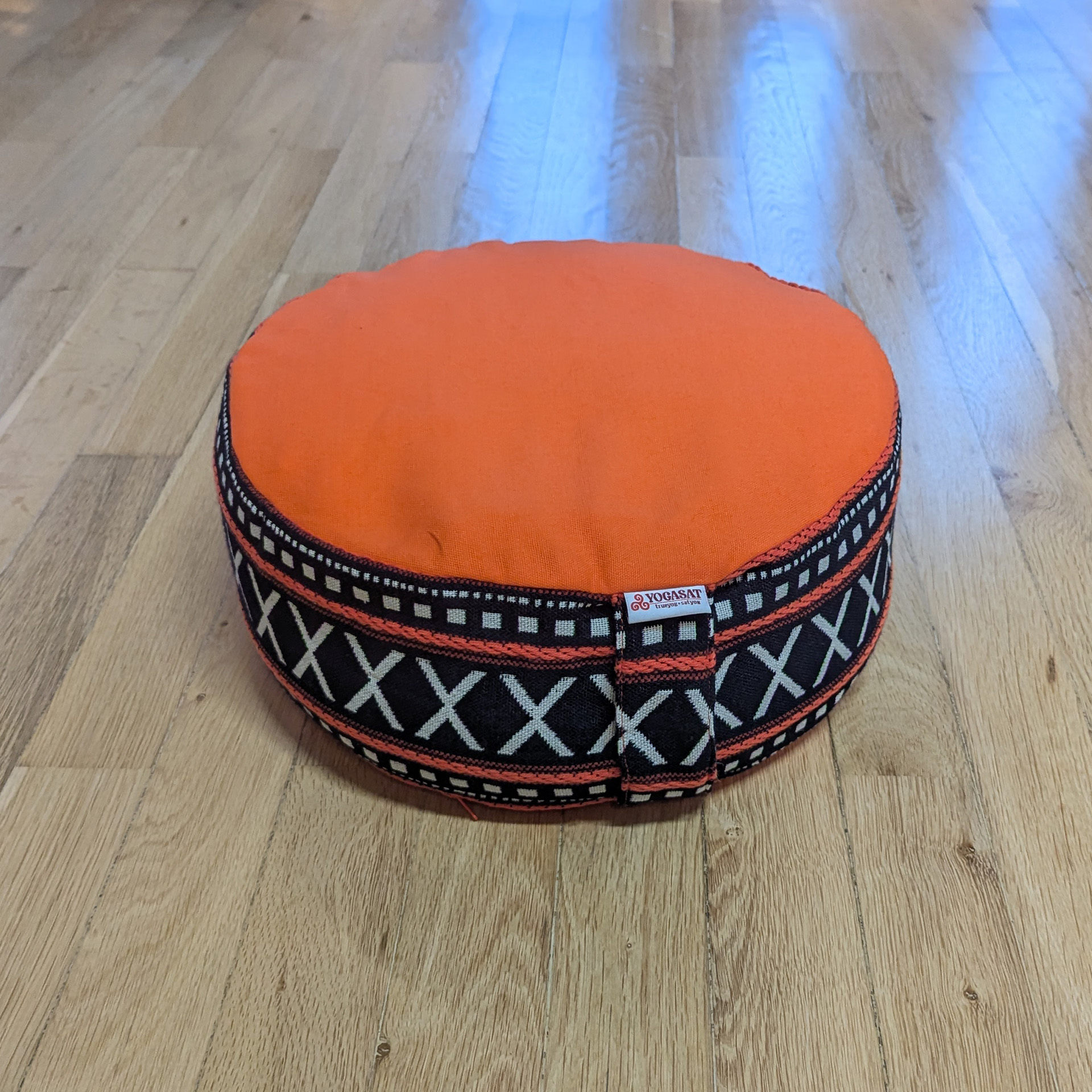 Pernă rotundă YogaSat cu hrișcă, portocaliu cu motive alb-negru, premium quality
