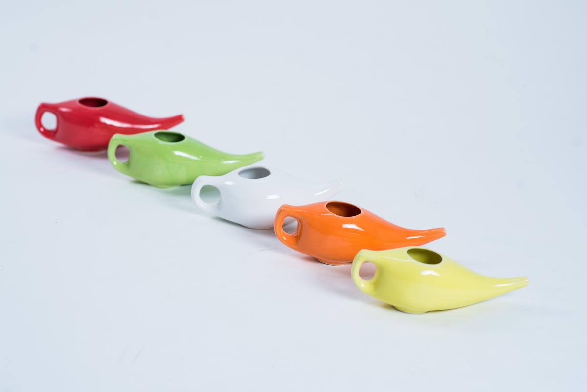 - Are forma și dimensiunea ideală pentru o utilizare ușoară, stocarea unei cantități optime de soluție salină și obținerea presiunii necesare pentru eliberarea sinusurilor